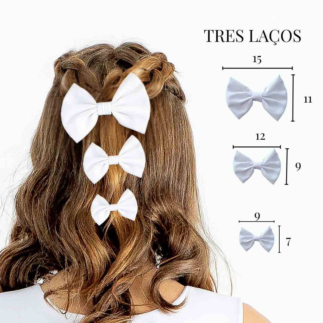 O kit com 3 laços de cabelo em tamanhos P, M e G é perfeito para compor penteados com delicadeza, estilo e harmonia. Pensado para diferentes propostas de uso, ele permite variar o visual com praticidade, seja para ocasiões especiais ou para o dia a dia.