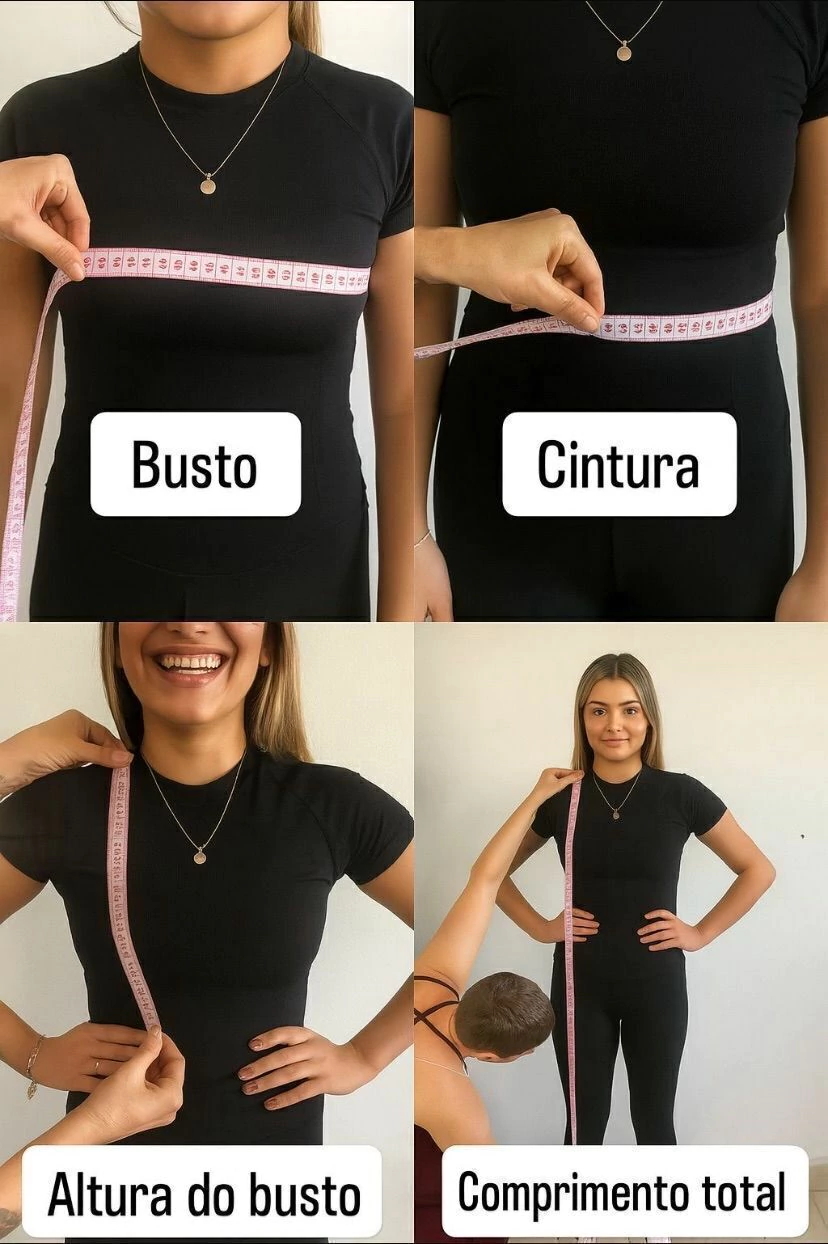 Ficou em dúvida entre dois tamanhos? Recomendamos escolher o maior — nossas peças contam com lastex para um ajuste perfeito.