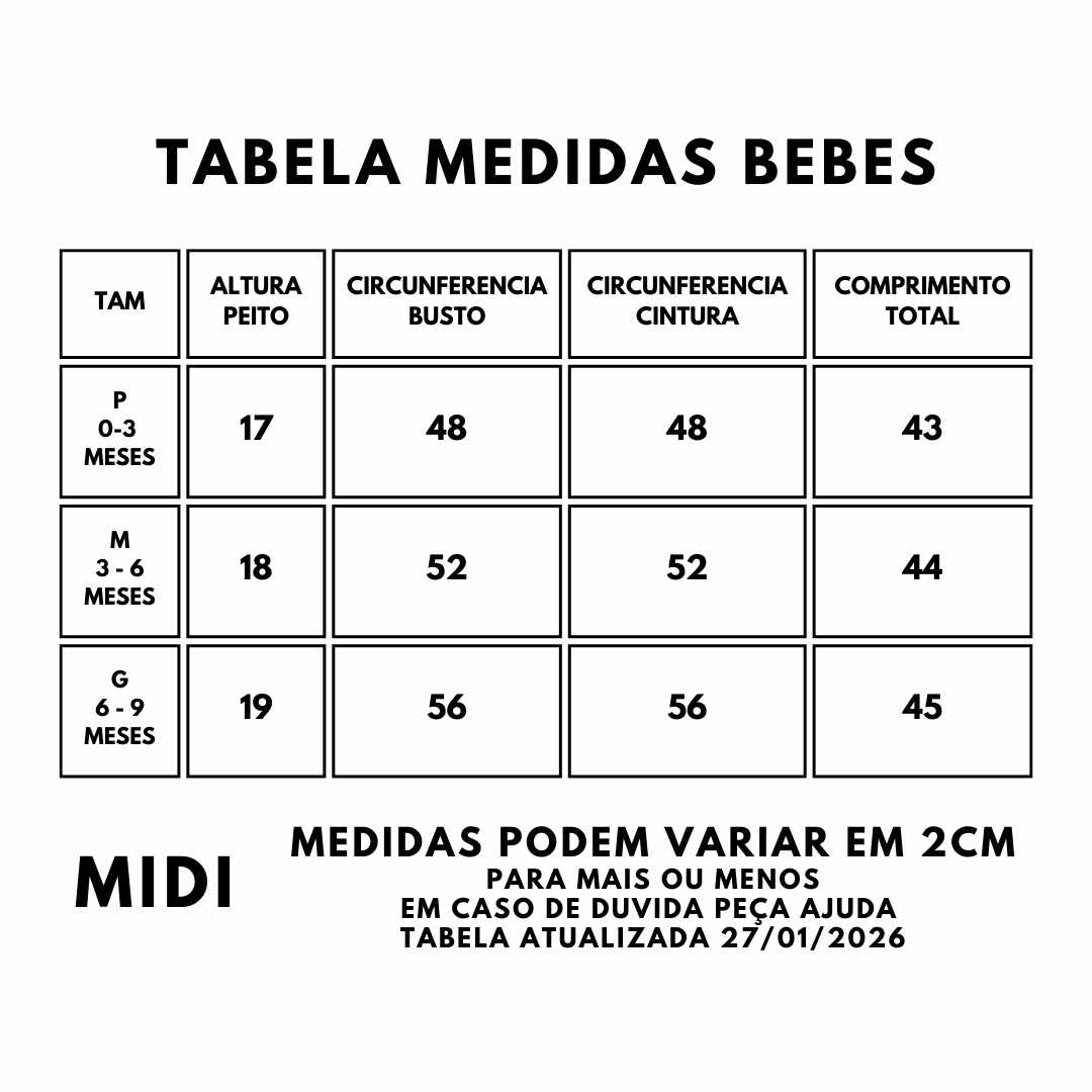 • Laço nas costas para ajuste e charme extra