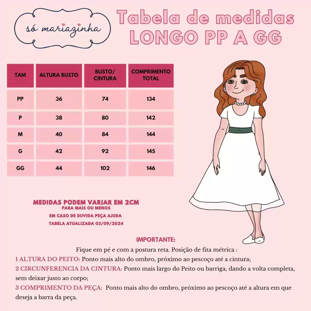 Prazo Ideal: Recomendamos que as medidas sejam tiradas até um mês antes da data do evento, considerando o crescimento natural da criança.
