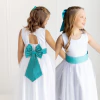 Vestido Branco Longo com 25 cores de faixa e laço 12 A 16 INFANTIL ref4190